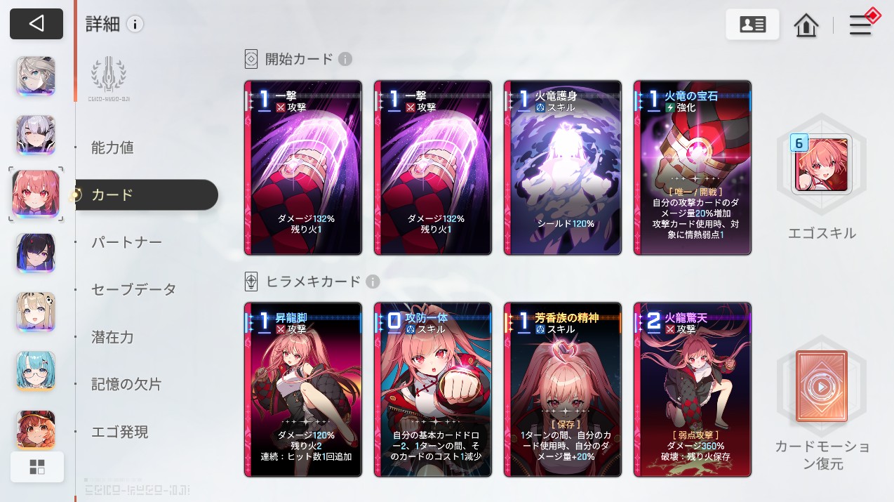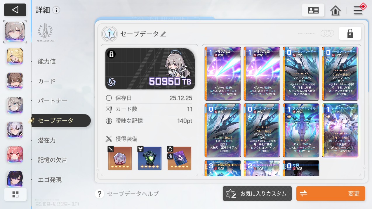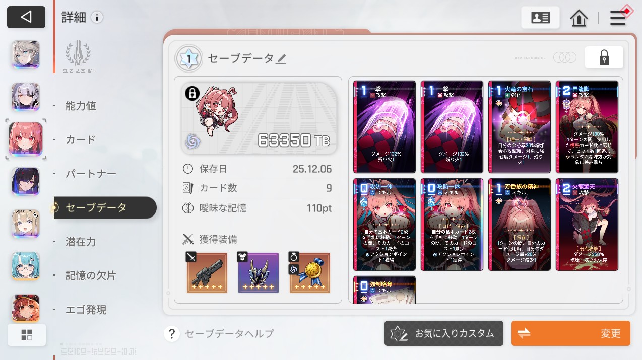 1pt3キャラで出撃するので、各キャラが持つデッキ(セーブデータ)